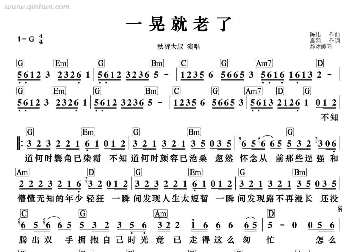 秋裤大叔《一晃就老了》简谱 - 带和弦版