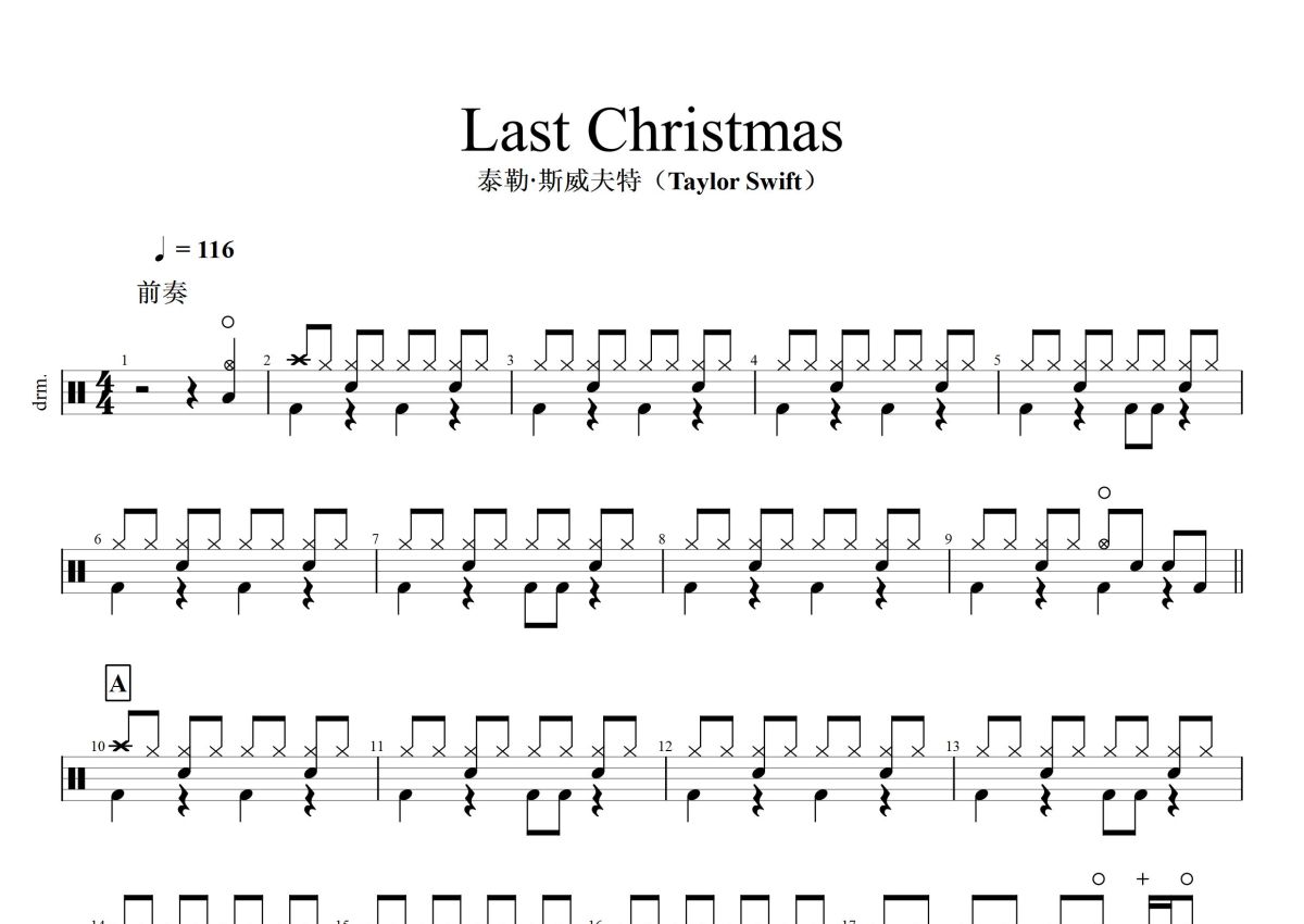 Taylor Swift(泰勒斯威夫特)《Last Christmas》鼓谱 - 架子鼓谱