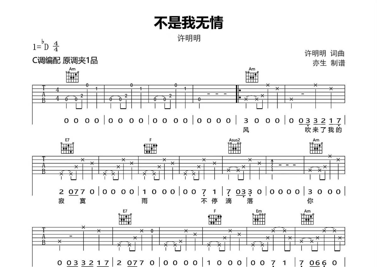 许明明《不是我无情》吉他谱 - C调弹唱六线谱