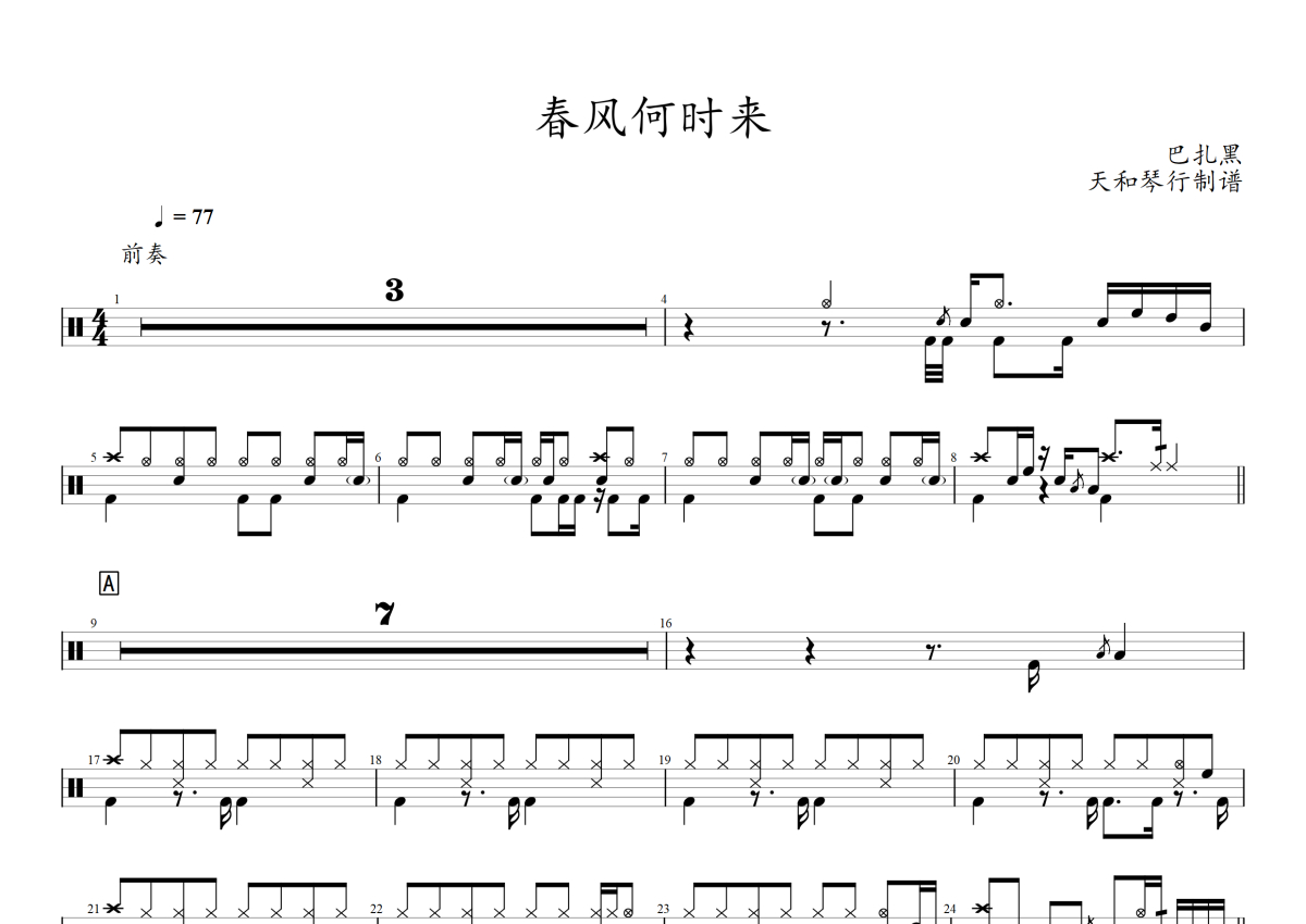 春风何时来架子鼓谱 - 巴扎黑演唱