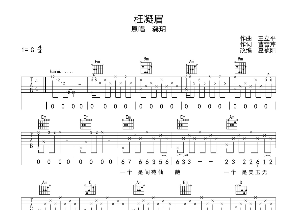 龚玥《枉凝眉》吉他谱 - G调弹唱六线谱
