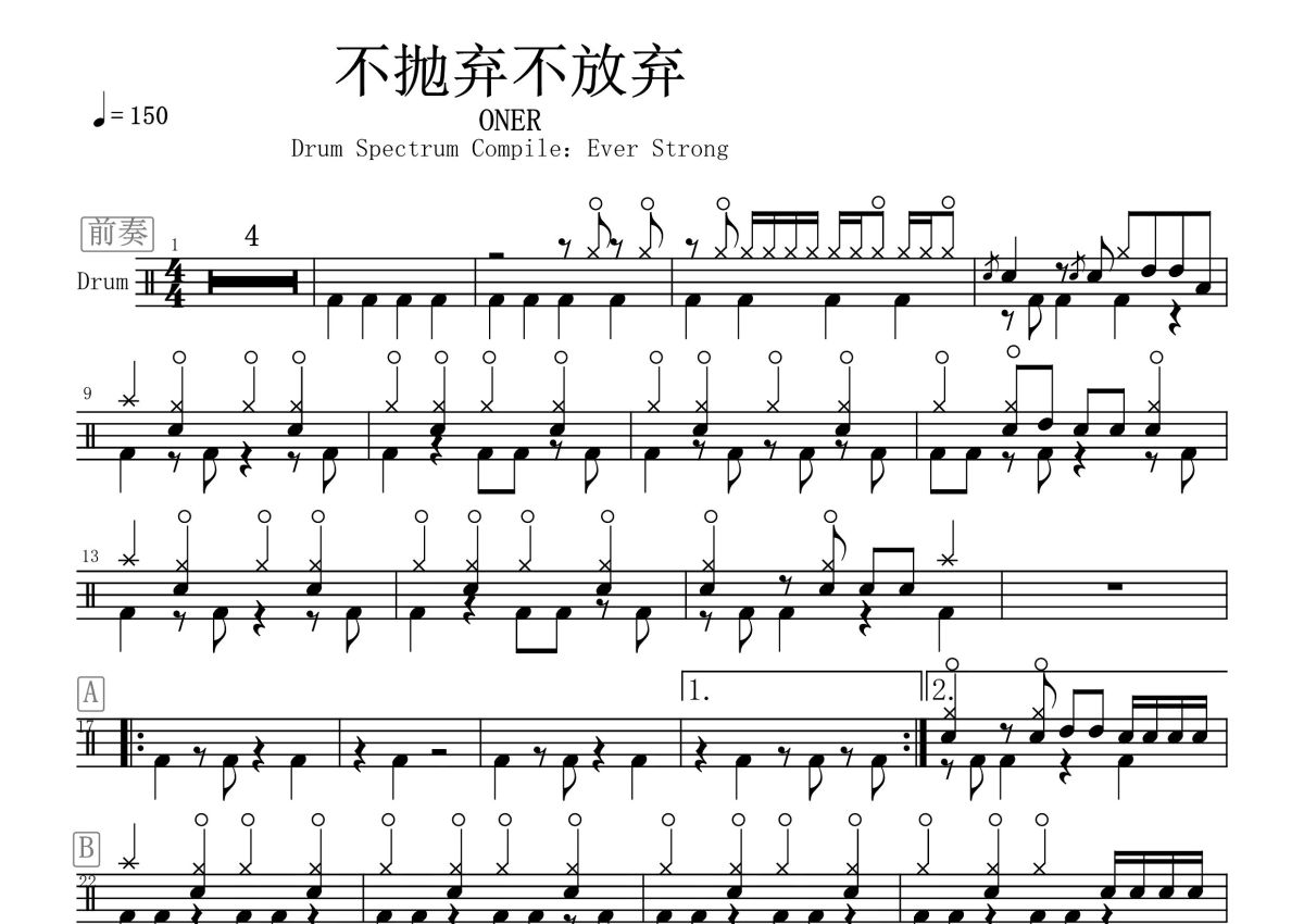 ONER《不抛弃不放弃》鼓谱 - 架子鼓谱