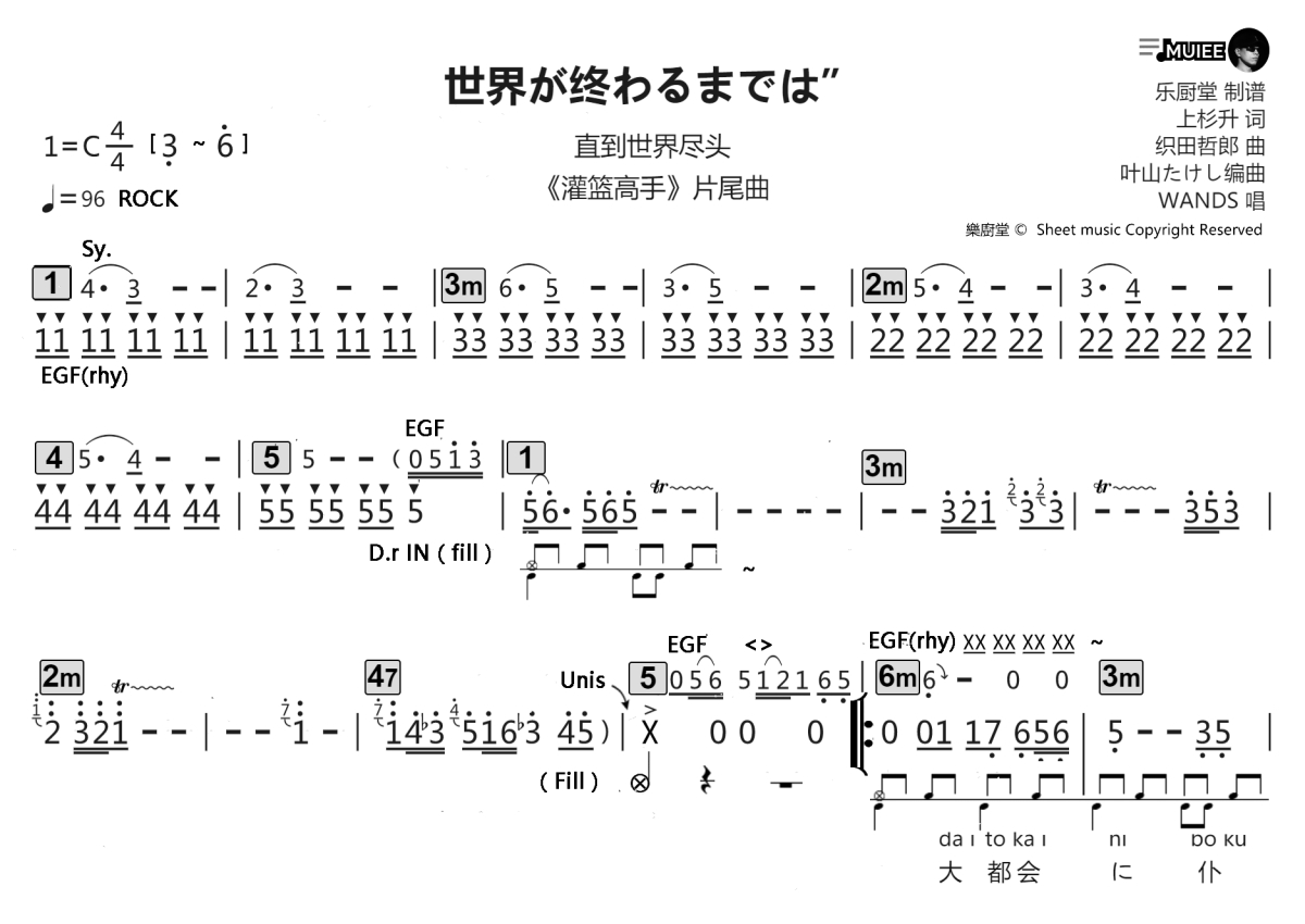 《直到世界尽头》是WANDS演唱的一首歌曲,这份简谱共有两张高清图谱,图谱由 @乐厨堂 编配上传职业LIVE乐手伴奏专用谱,同时适合四大件配置乐队排练和专业歌手学歌,以及原版的应急演出即兴伴奏使用。