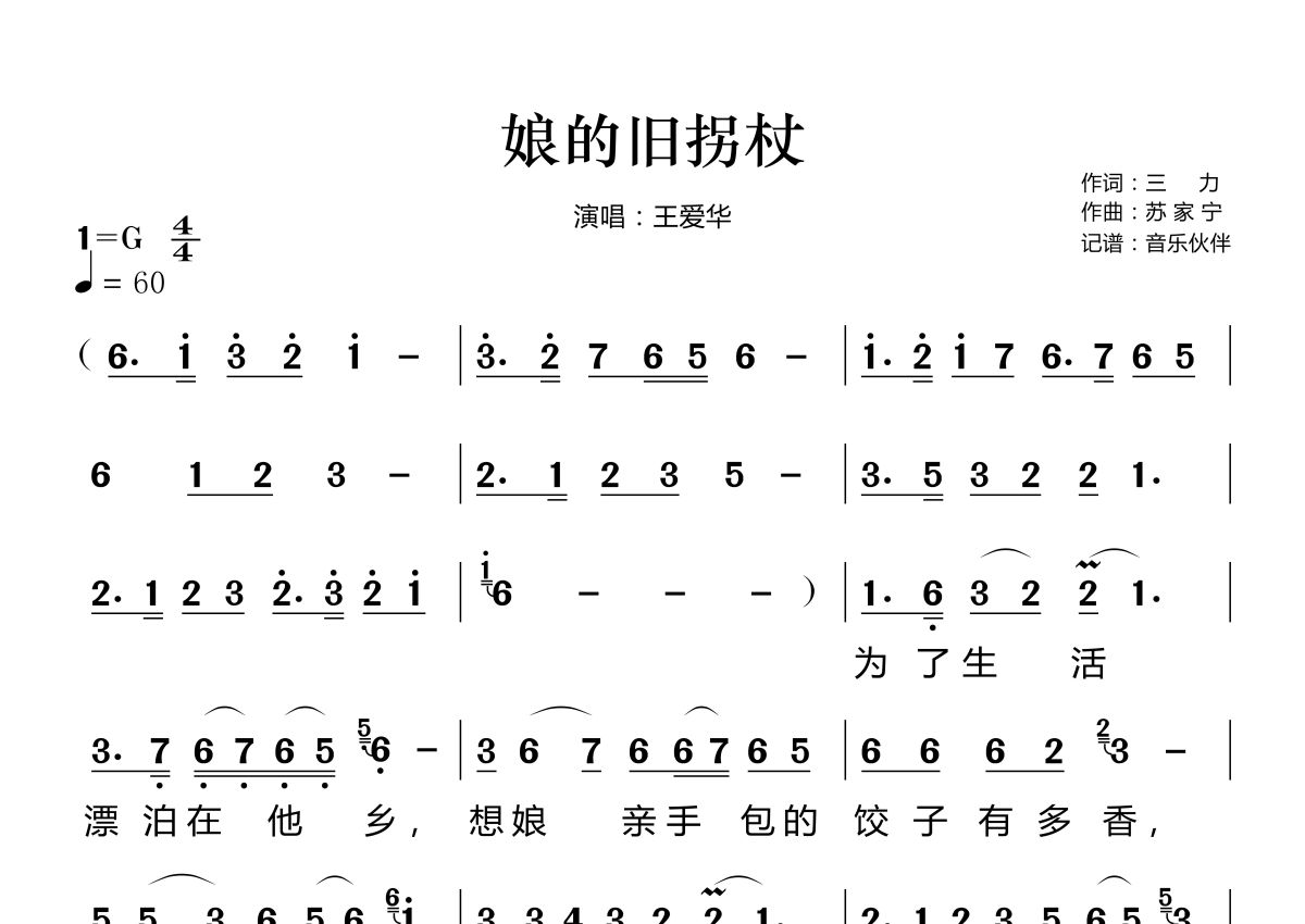 《娘的旧拐杖》是王爱华演唱的一首歌曲,这份简谱共有两张高清图谱,图谱由 @音乐伙伴 编配上传。