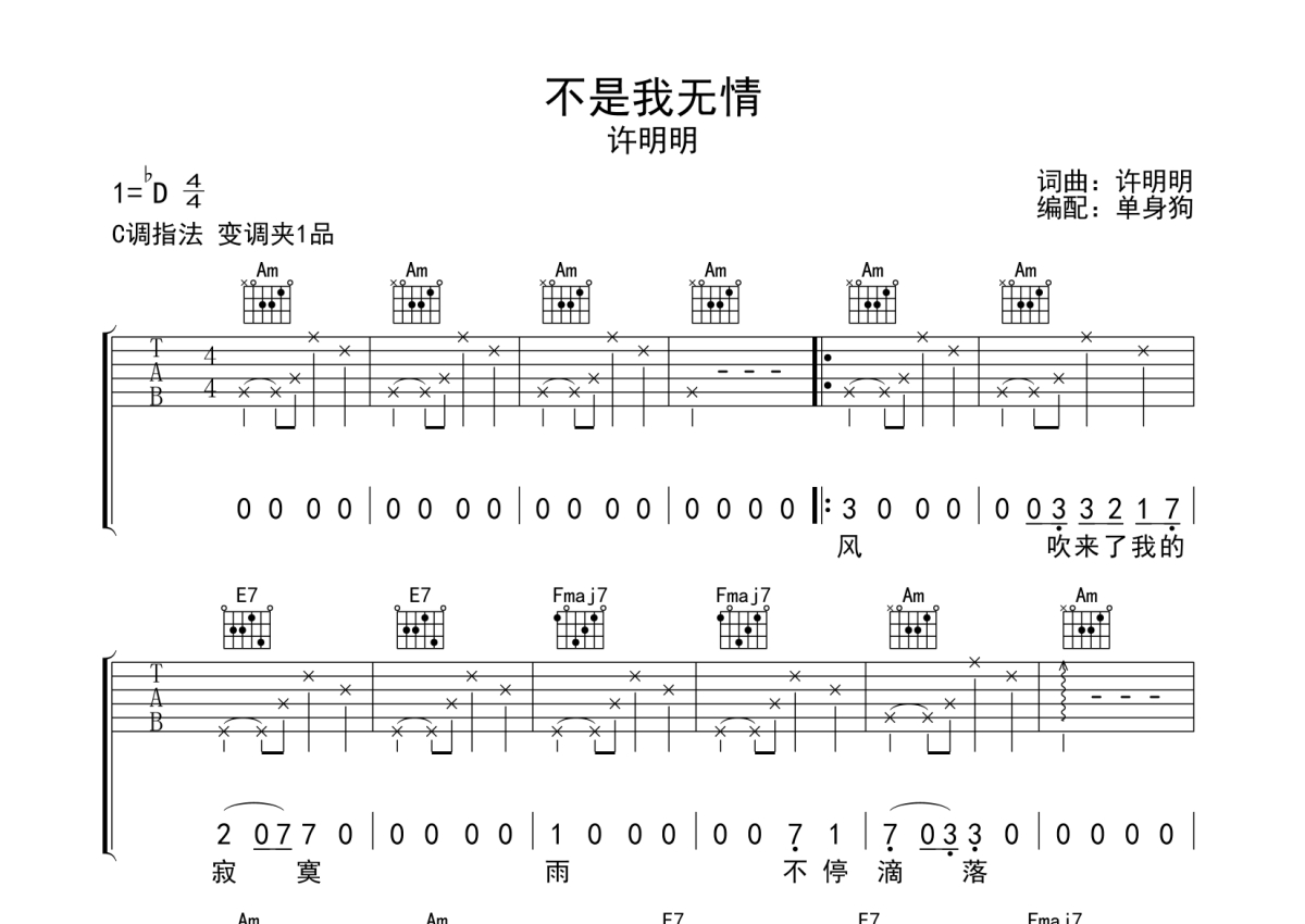 不是我无情吉他谱 - 许明明 - C调弹唱六线谱