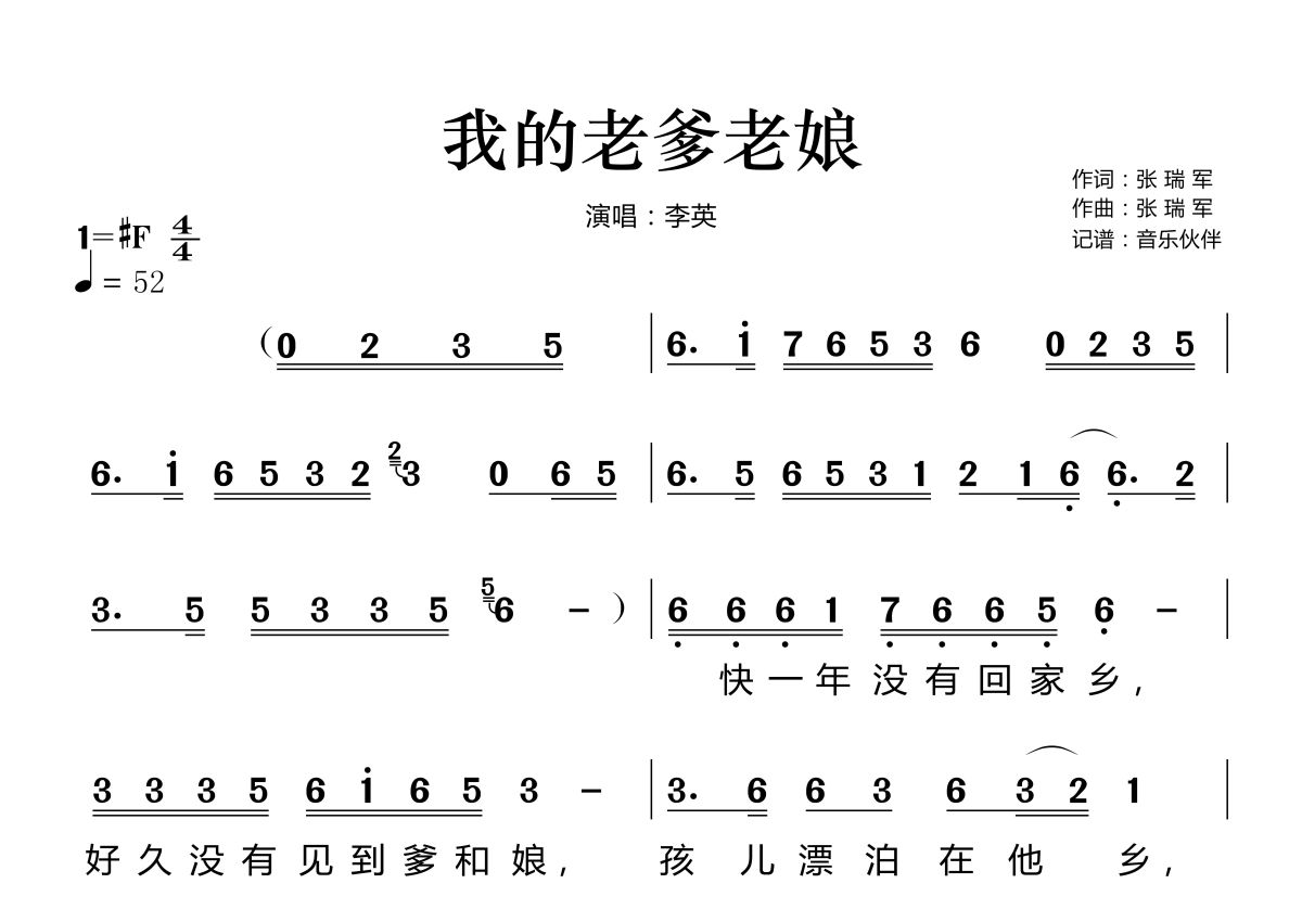 我的老爹老娘简谱 - 李英演唱