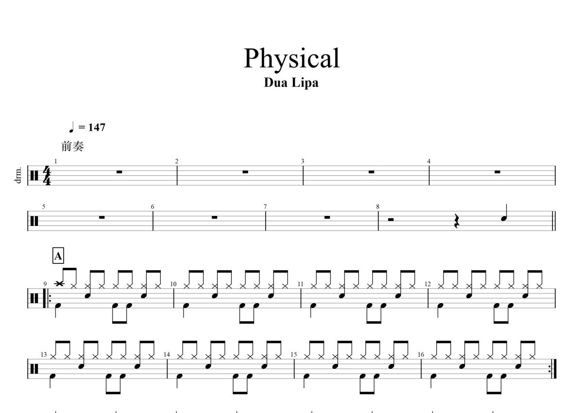 《Physical》是Dua Lipa演唱的一首歌曲,这份鼓谱共有两张高清图谱,图谱由 @打鼓谱 编配上传,图谱使用五线谱编配,使用这份Physical架子鼓谱,你将能够轻松地敲打出这首Dua Lipa的Physical,快来尝试吧。《Physical》是由英国女歌手是Dua Lipa演唱的一首歌曲,单曲于2020年1月30日通过华纳音乐集团发行 [1] ,收录于专辑《Future Nostalgia》中。