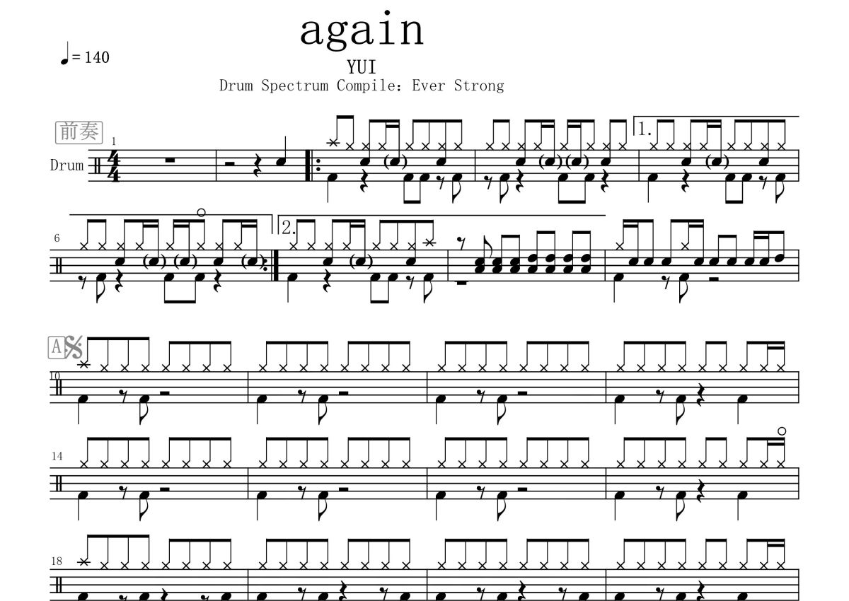 YUI《again》鼓谱 - 架子鼓谱