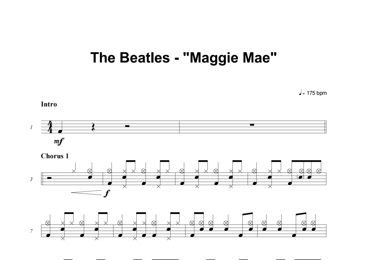 The Beatles《Maggie Mae》架子鼓谱