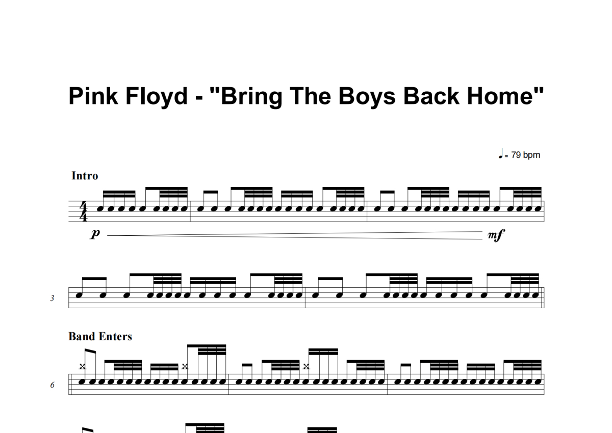 Pink Floyd《Bring The Boys Back Home》架子鼓谱