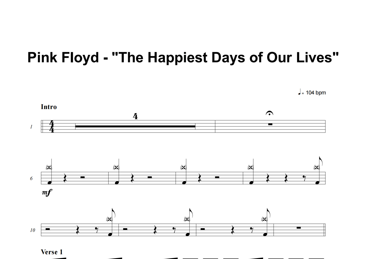 Pink Floyd《The Happiest Days Of Our Lives》架子鼓谱