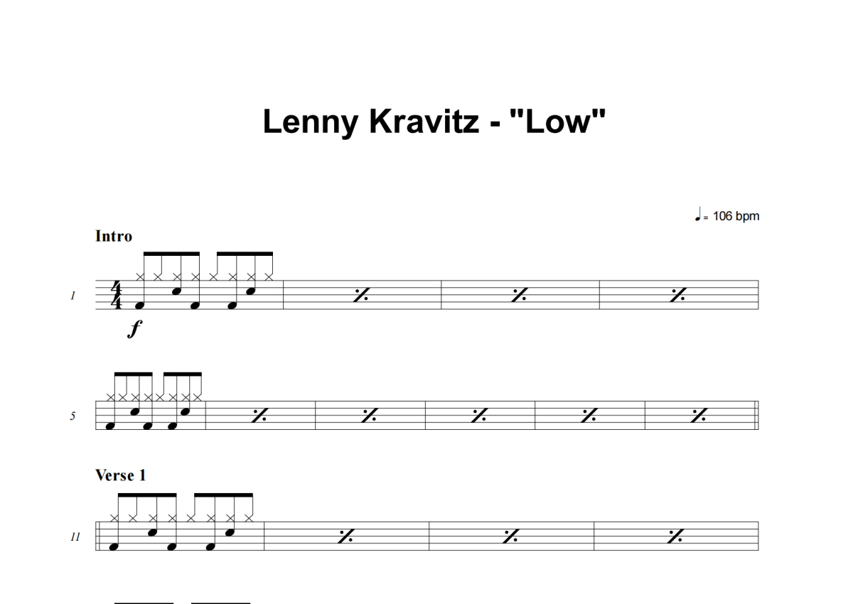 Lenny Kravitz《Low》架子鼓谱