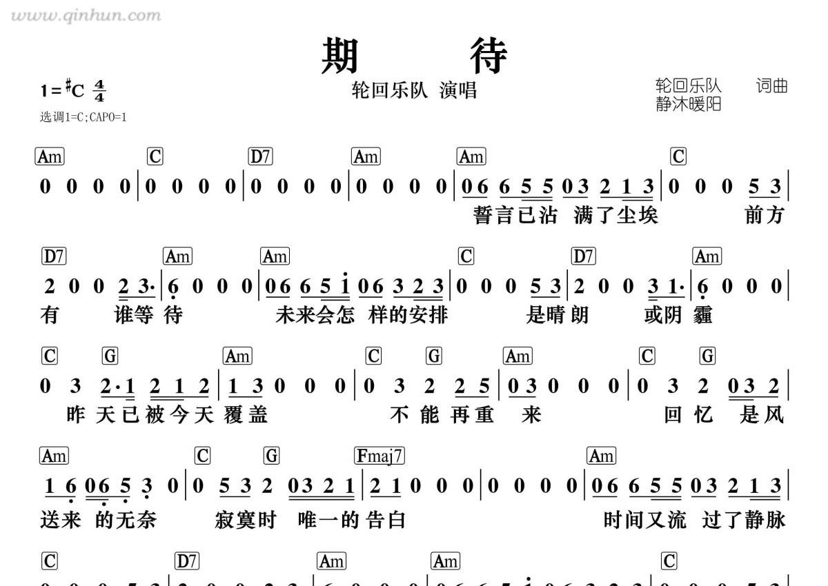 《期待》是轮回乐队演唱的一首歌曲,带和弦版,这份简谱共有一张高清图谱,图谱由 @静沐暖阳 编配上传。