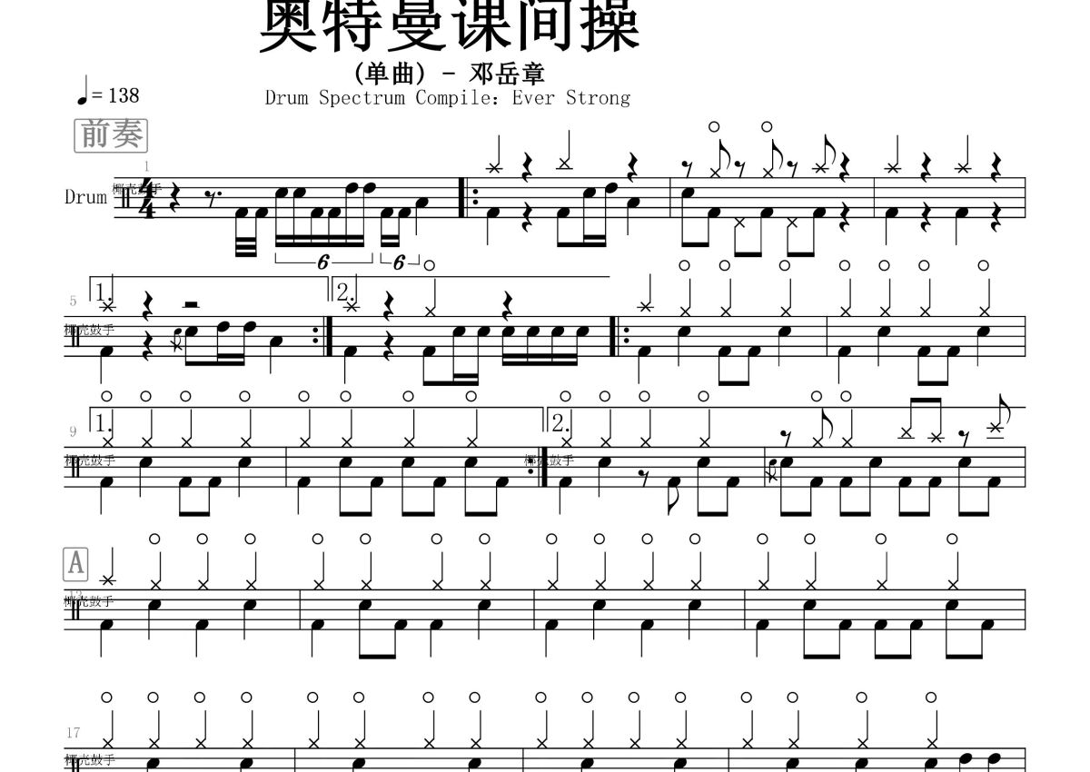 邓岳章《奥特曼课间操》鼓谱 - 架子鼓谱