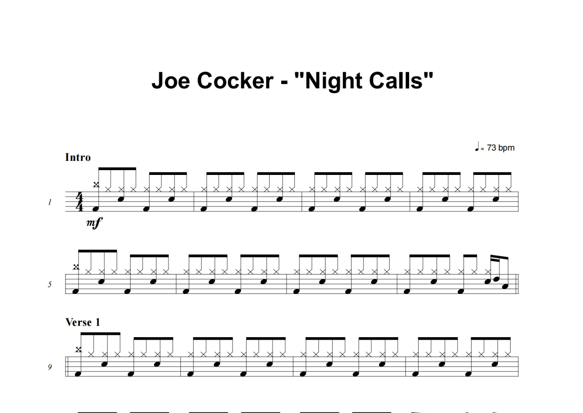 Joe Cocker《Night Calls》架子鼓谱