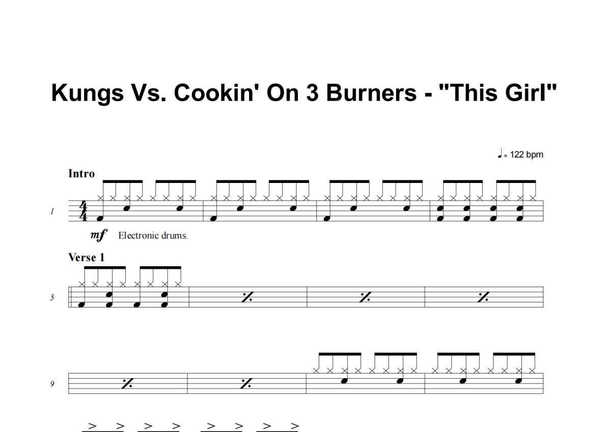Kungs Vs. Cookin' On 3 Burners《This Girl》架子鼓谱
