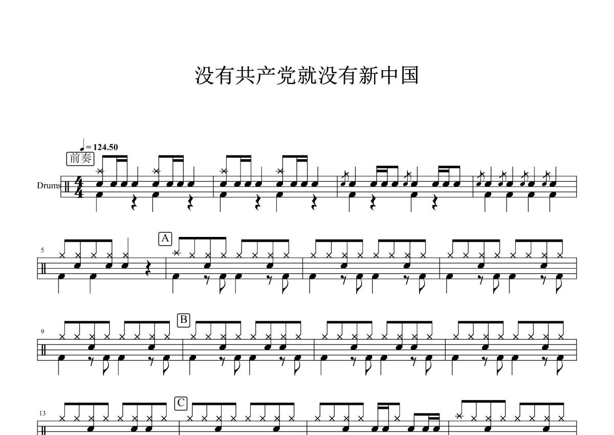 红歌精选《没有共产党就没有新中国》鼓谱 - 架子鼓谱