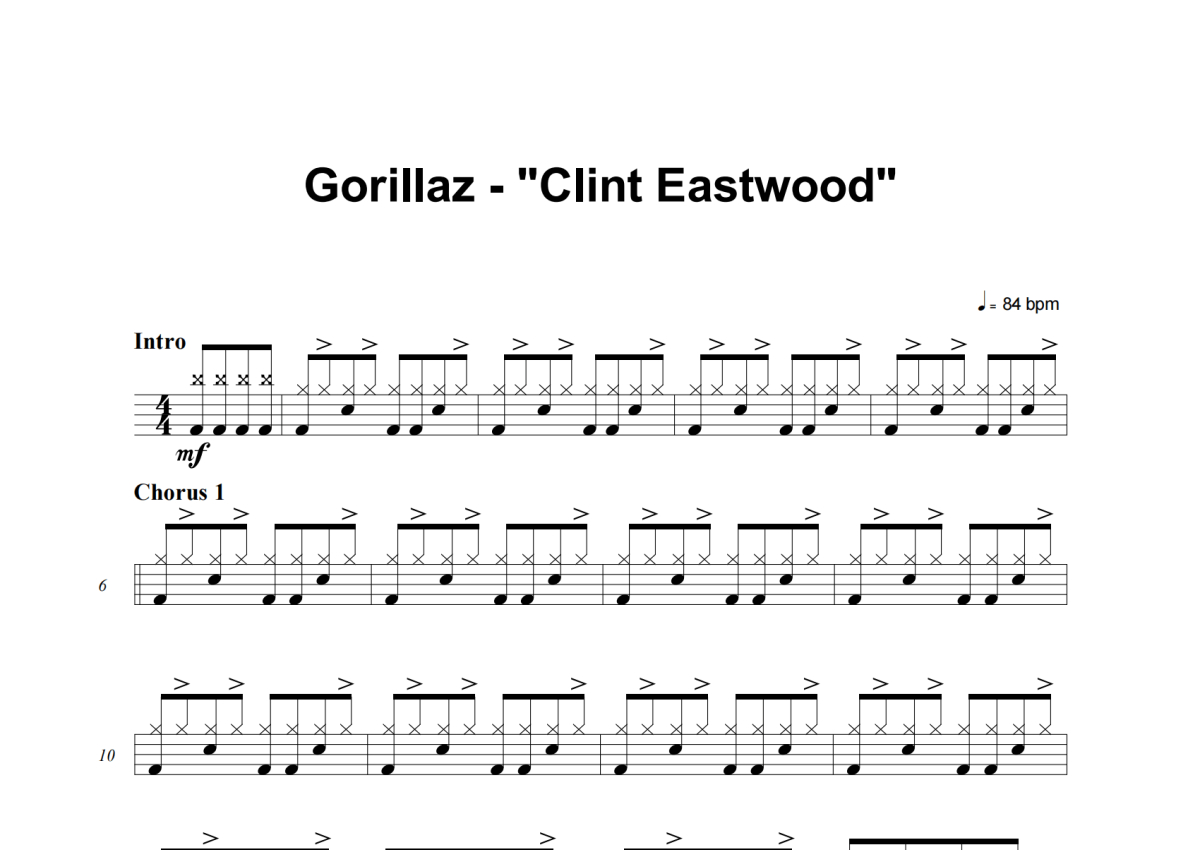 Gorillaz《Clint Eastwood》架子鼓谱