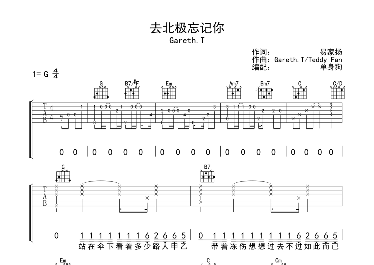 Gareth.T《去北极忘记你》吉他谱 - G调弹唱六线谱