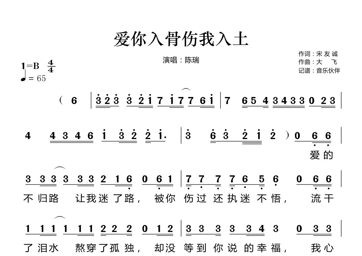 爱你入骨伤我入土简谱 - 陈瑞演唱