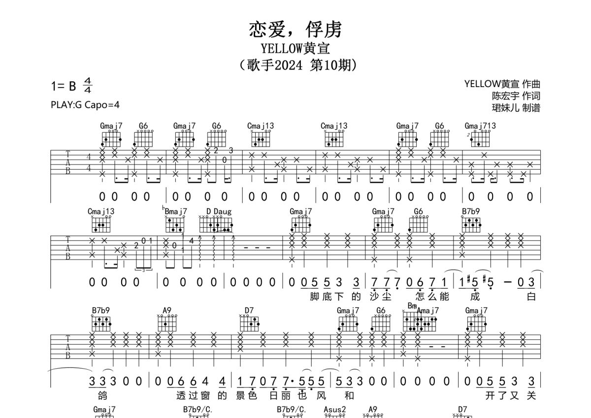 YELLOW黄宣《恋爱,俘虏》吉他谱 - G调弹唱六线谱