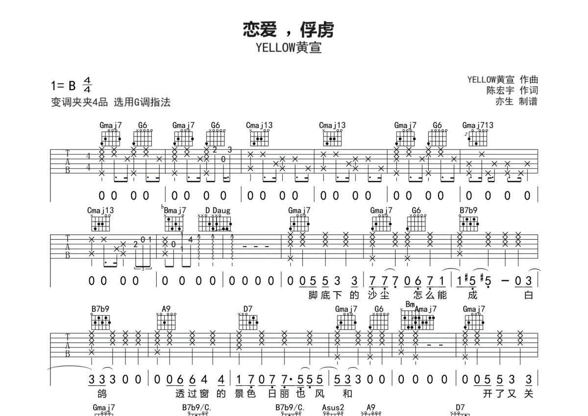 YELLOW黄宣《恋爱,俘虏》吉他谱 - G调弹唱六线谱