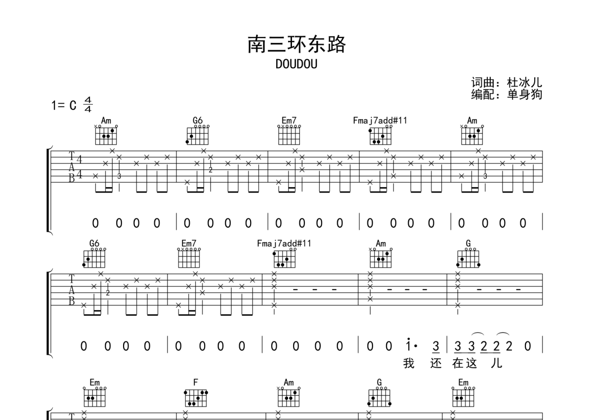 南三环东路吉他谱 - DOUDOU - C调弹唱六线谱