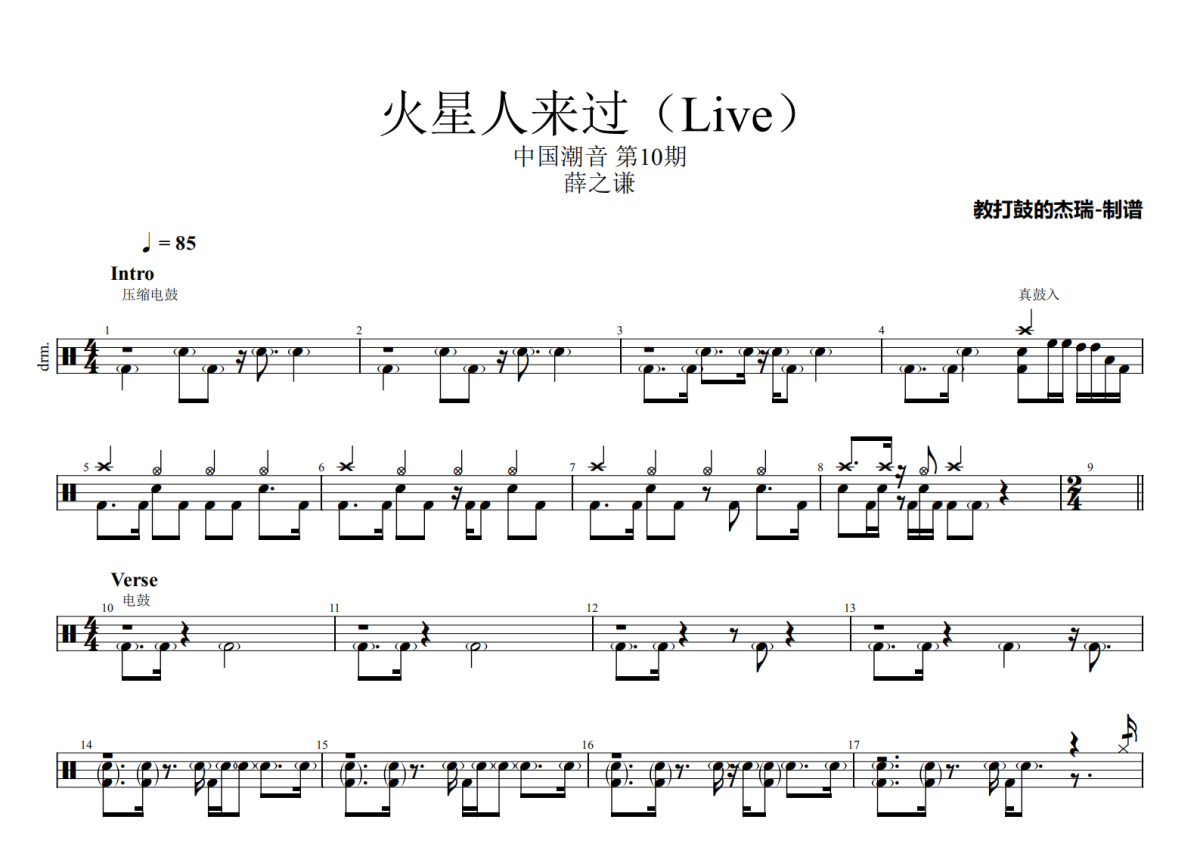 Live《火星人来过(Live)》架子鼓谱 - 中国潮音 第10期