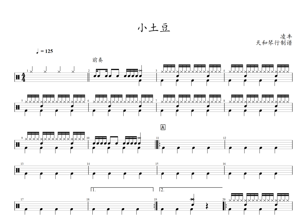 凌丰《小土豆》架子鼓谱
