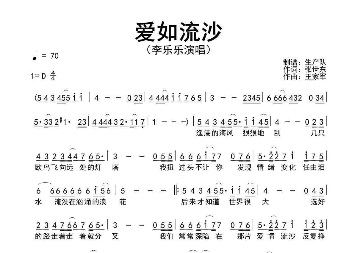 李乐乐《爱如流沙》简谱 - 原版简谱