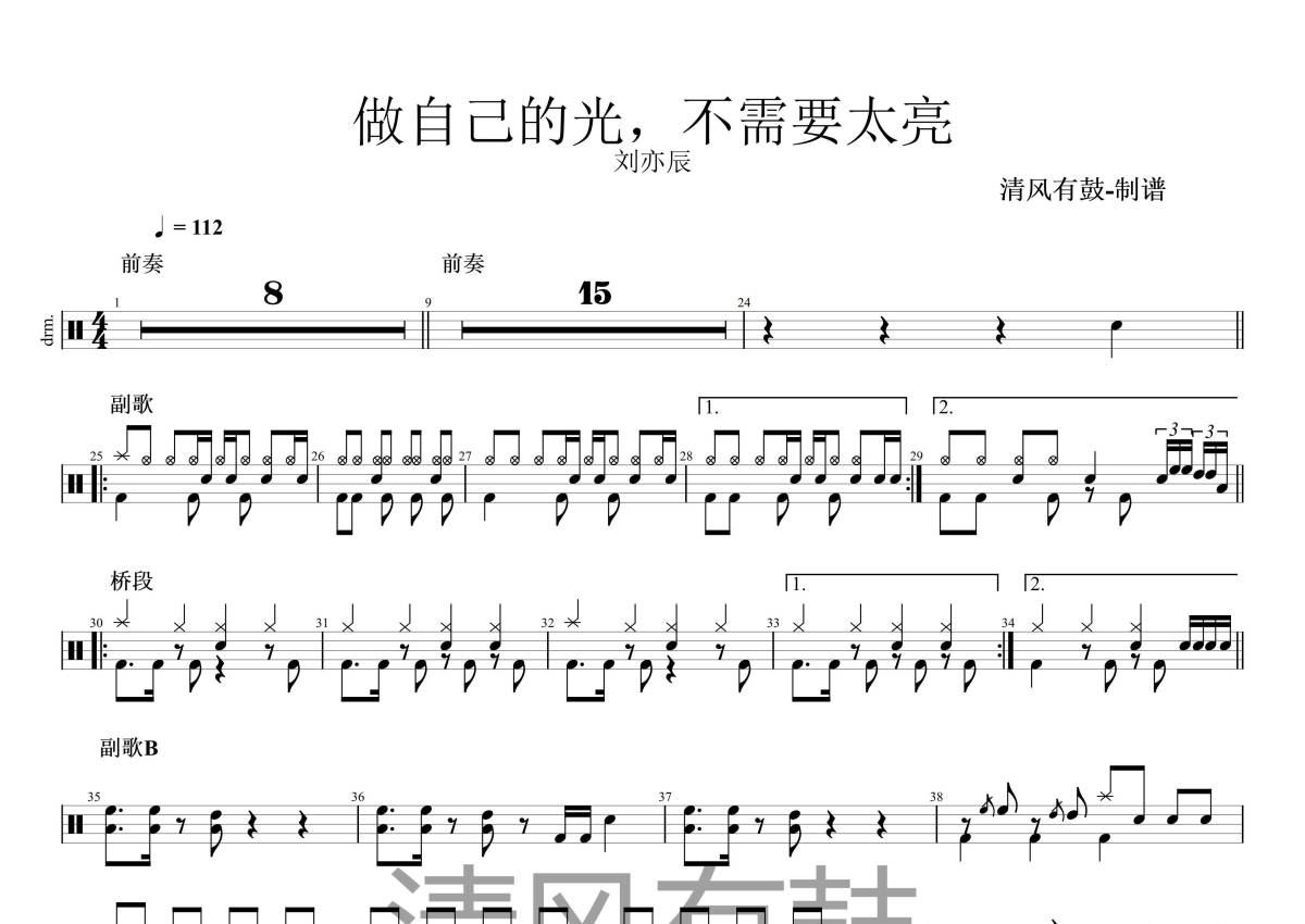 做自己的光不需要太亮架子鼓谱 - 善宇