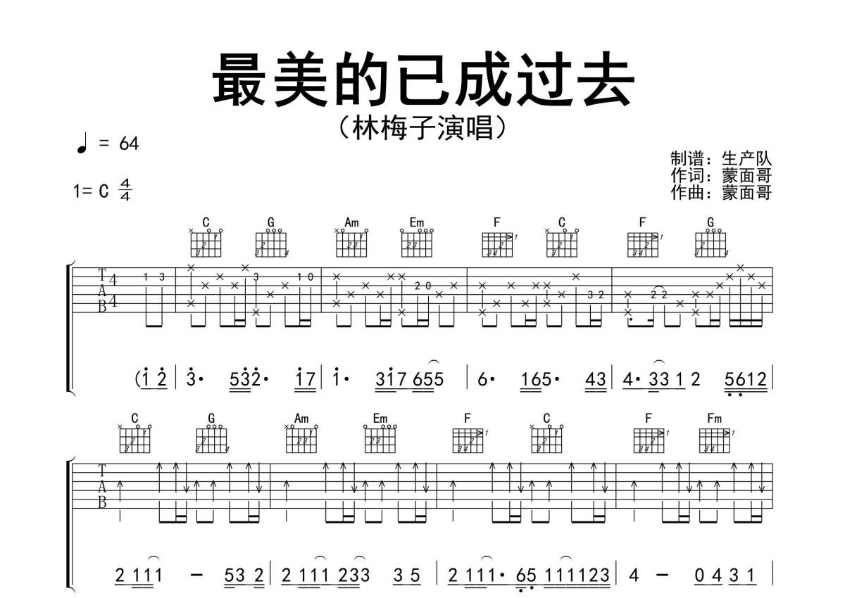 《最美的已成过去》是林梅子演唱的一首歌曲,精编完美版,拍号为4/4拍,歌曲速度为每分钟64拍,歌曲原调为C调,本吉他谱采用的是C调指法编配,演奏时不需要使用变调夹即为原调,这份吉他谱共有三张高清图谱,图谱由 @生产队 编配上传,图谱使用六线谱编配,包含吉他和弦指法、简谱以及歌词部分,使用这份最美的已成过去吉他谱,可以让你更加方便地掌握这首歌曲的弹唱技巧,快来尝试吧。《最美的已成过去》是由林梅子演唱的歌曲。本吉他谱根据原版C调指法编配,完整的前奏、间奏和solo编配,一首动听的抒情歌曲,值得推荐。失去的东西最好是不想不惦记,最美的终究也会变成过去。