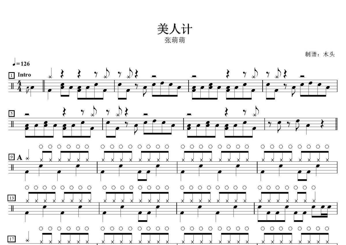 张萌萌《美人计》鼓谱 - 架子鼓谱