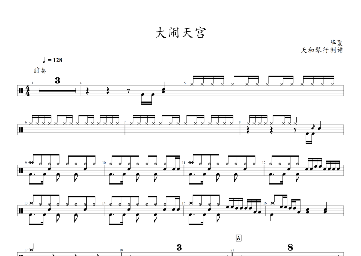 毕夏&张恒远《大闹天宫》架子鼓谱