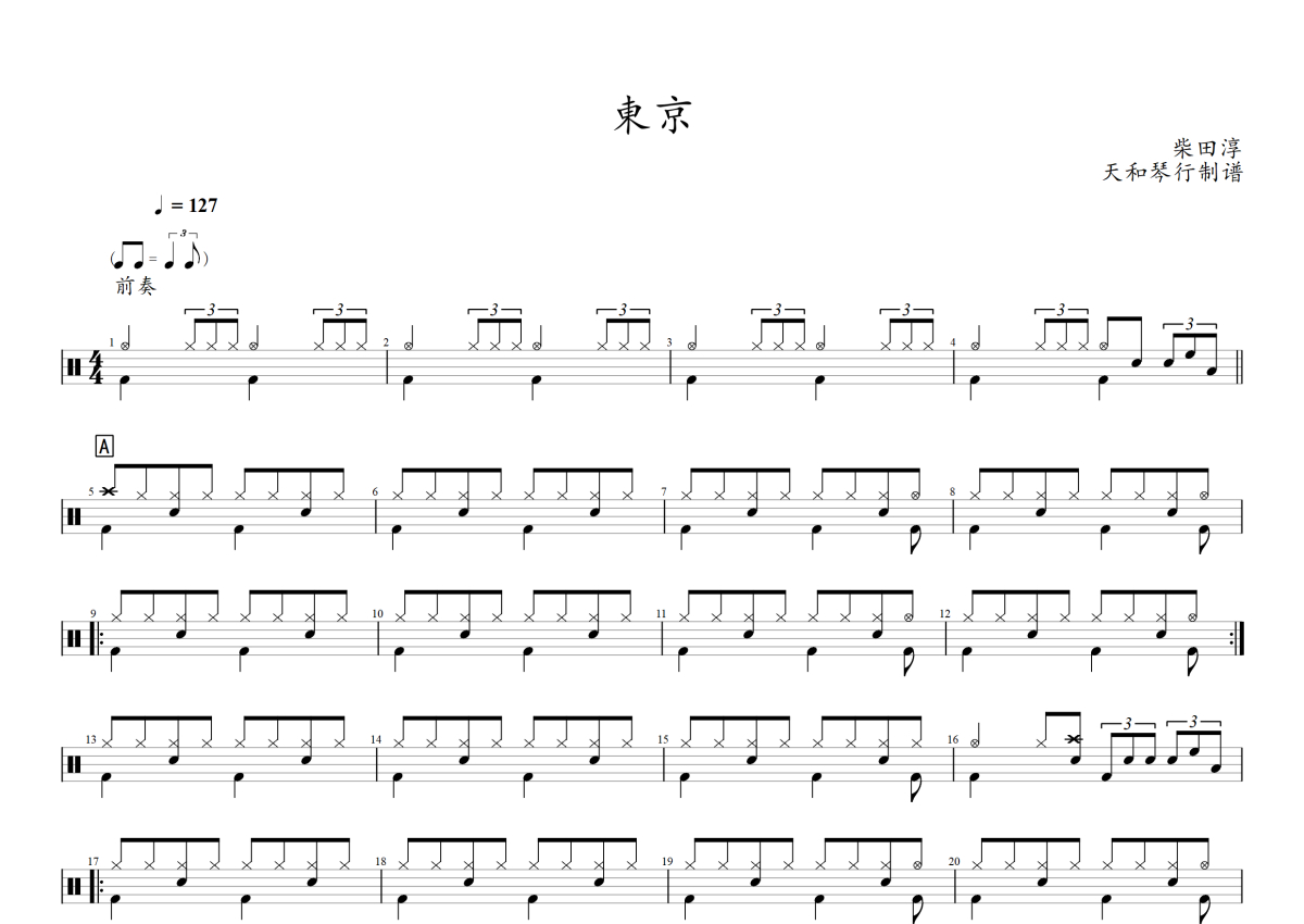 《东京》是柴田淳演唱的一首歌曲,这份架子鼓谱共有两张高清图谱,图谱由 @音符喷血者 编配上传,图谱使用五线谱编配,使用这份东京架子鼓谱,你将能够轻松地敲打出这首柴田淳的东京,快来尝试吧。