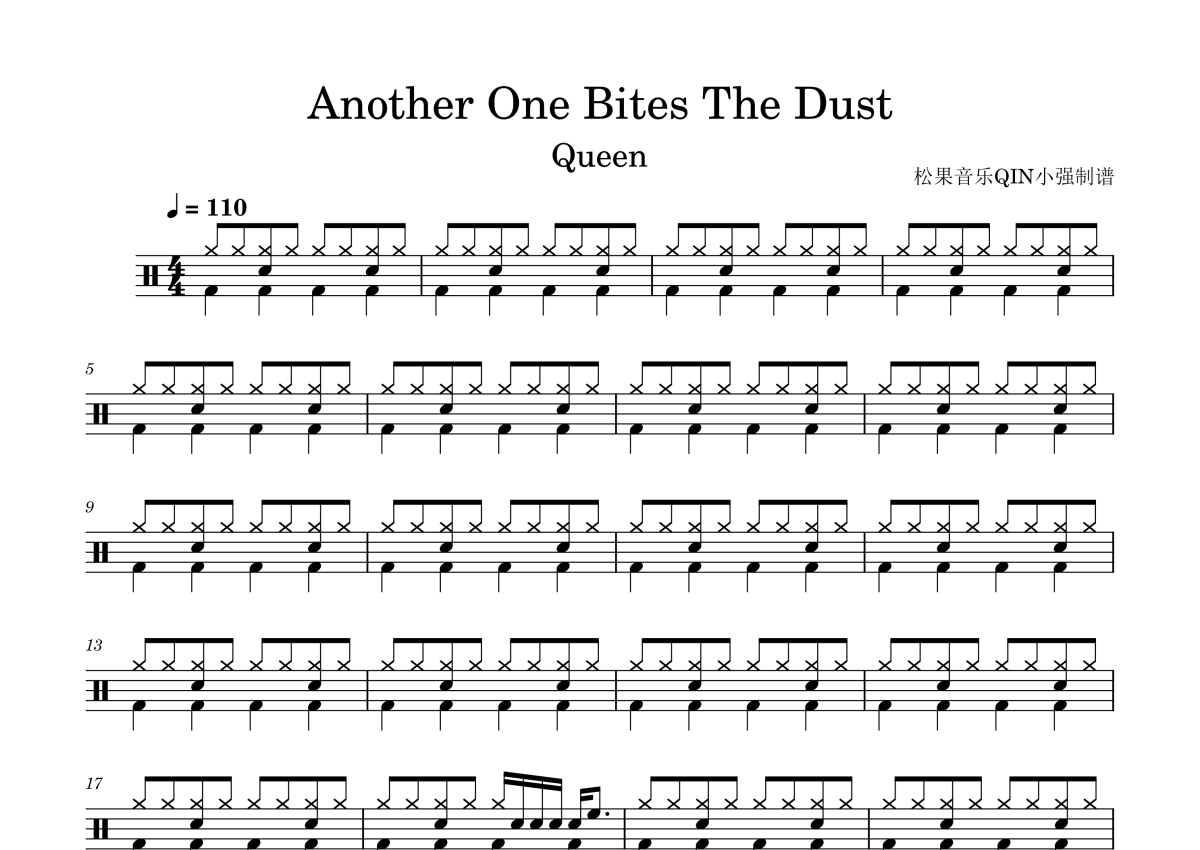 《Another One Bites The Dust》是Queen(皇后乐队)演唱的一首歌曲,这份架子鼓谱共有三张高清图谱,图谱由 @琴魂用户_219398 编配上传,图谱使用五线谱编配,使用这份Another One Bites The Dust架子鼓谱,你将能够轻松地敲打出这首Queen(皇后乐队)的Another One Bites The Dust,快来尝试吧。《another one bites the dust》是QUEEN乐队演唱的一首歌曲,由约翰·迪肯填词谱曲,收录在专辑《The Game》中。