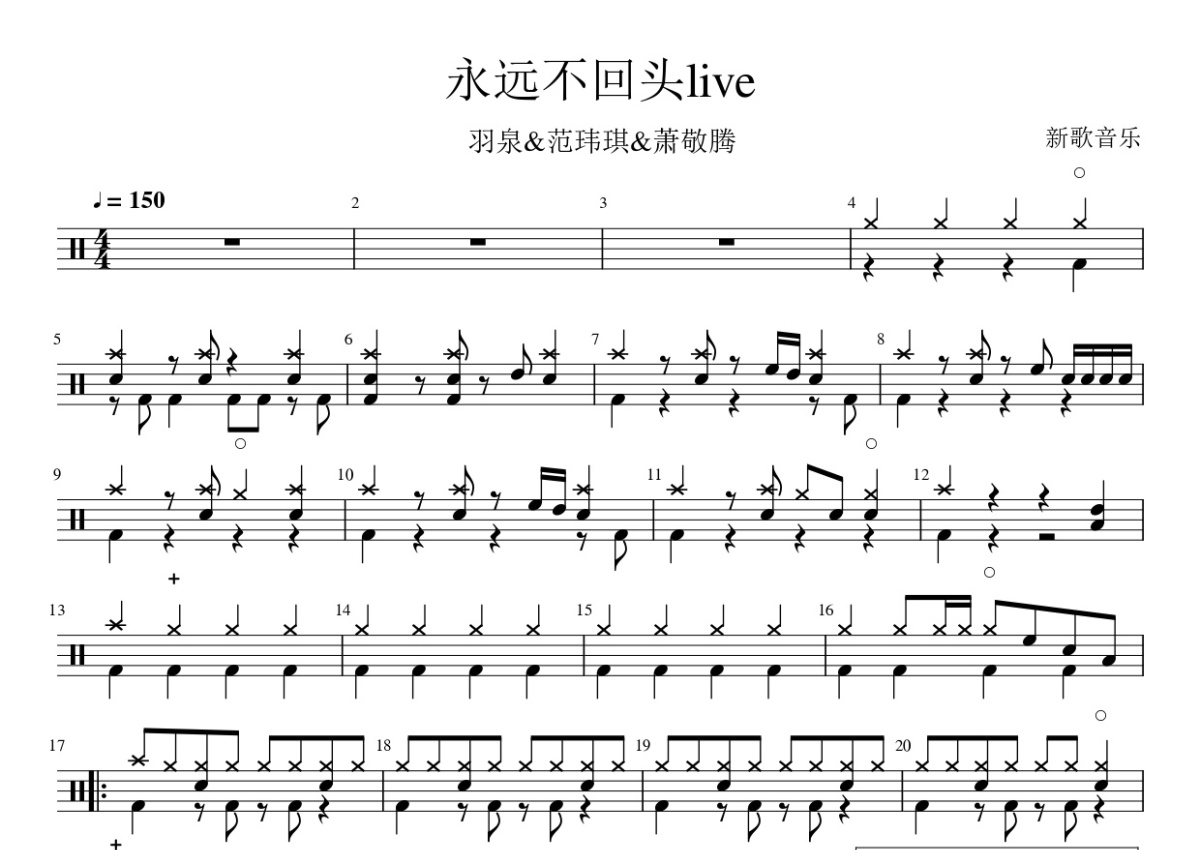 羽泉《永远不回头》鼓谱 - 架子鼓谱