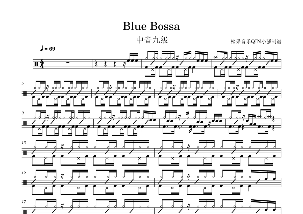 中音考级九级《Blue Bossa》架子鼓谱
