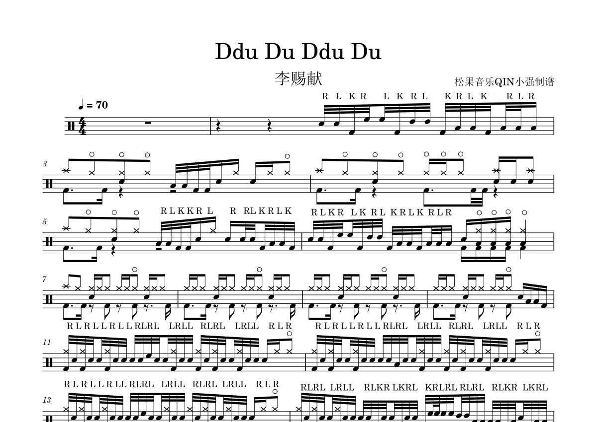 《DDU-DU DDU-DU》是BLACKPINK演唱的一首歌曲,拍号为4/4拍,这份架子鼓谱共有两张高清图谱,图谱由 @松果音乐QIN小强 编配上传,图谱使用五线谱编配,使用这份DDU-DU DDU-DU架子鼓谱,你将能够轻松地敲打出这首BLACKPINK的DDU-DU DDU-DU,快来尝试吧。《DDU-DU DDU-DU(뚜두뚜두)》是韩国女子团体BLACKPINK演唱的歌曲,于2018年6月15日发行,收录于首张迷你专辑《SQUARE UP》中。