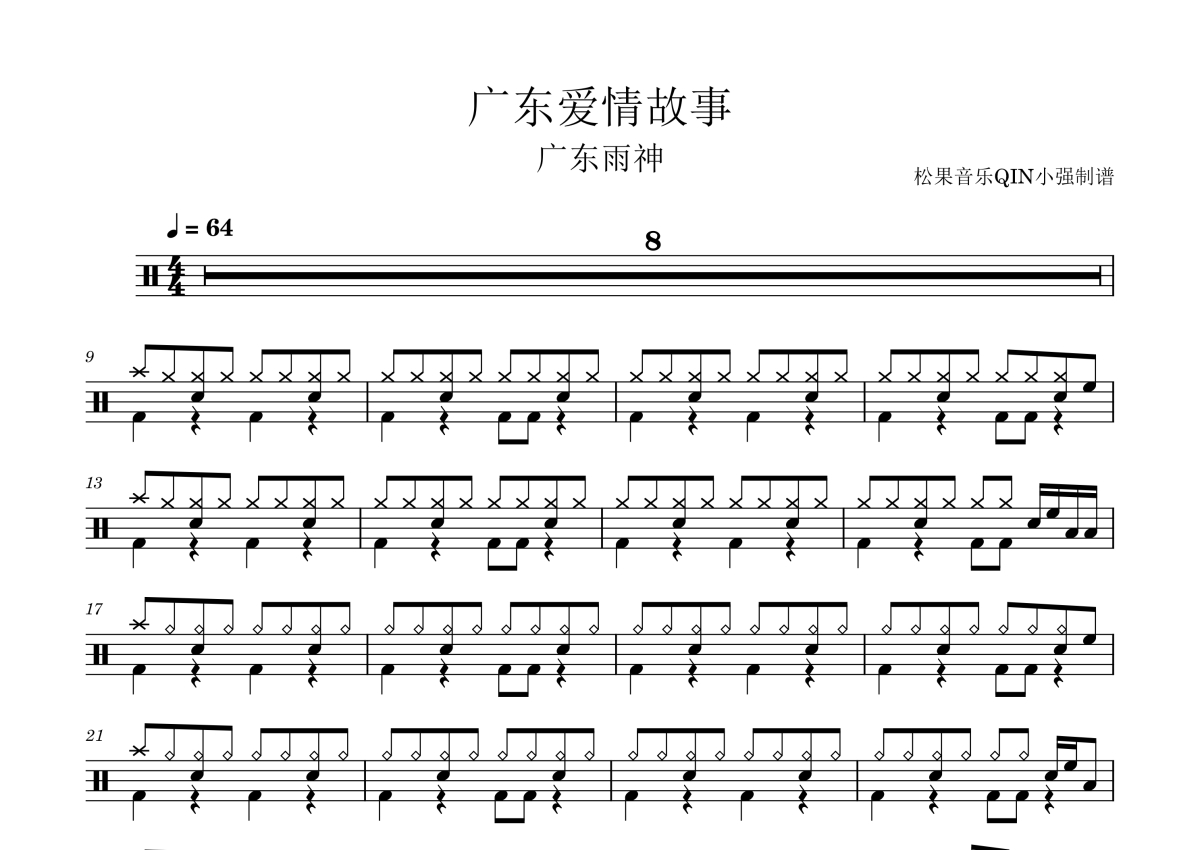 广东雨神《广东爱情故事》架子鼓谱
