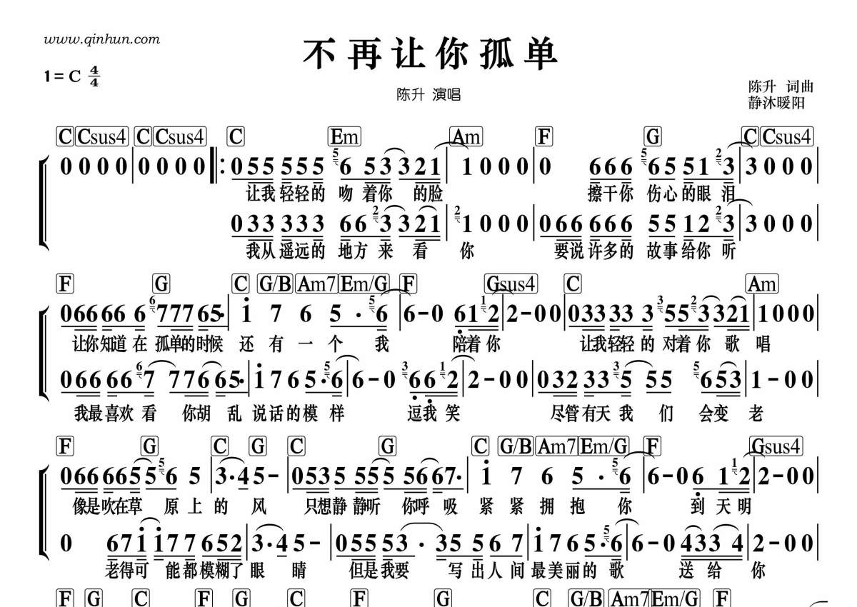 《不再让你孤单》是陈升演唱的一首歌曲,这份简谱共有一张高清图谱,图谱由 @静沐暖阳 编配上传。