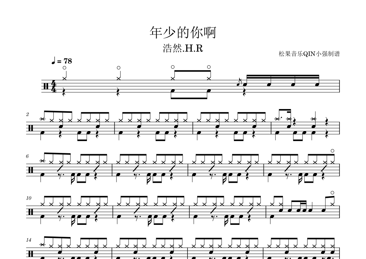 年少的你啊架子鼓谱 - 浩然H.R