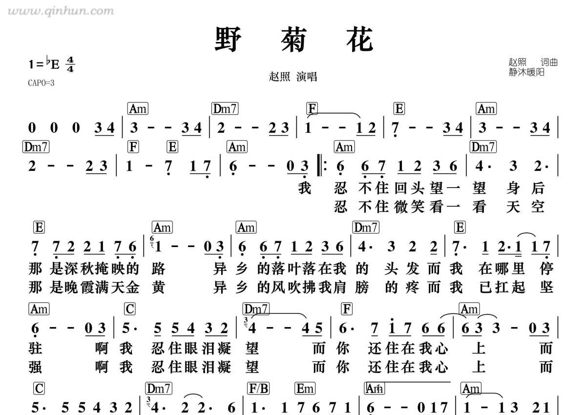 赵照《野菊花》简谱
