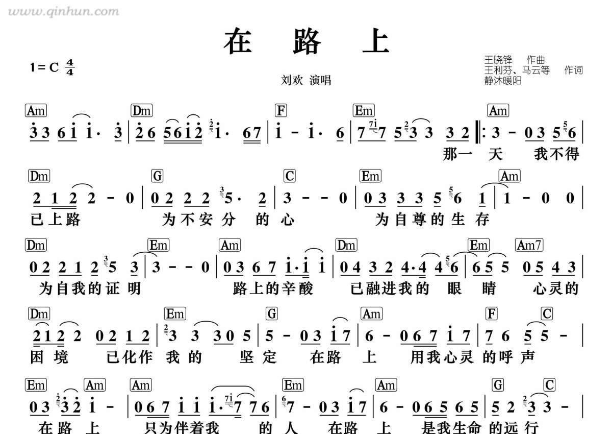 《在路上》是花粥演唱的一首歌曲,拍号为4/4拍,这份简谱共有一张高清图谱,图谱由 @静沐暖阳 编配上传。
