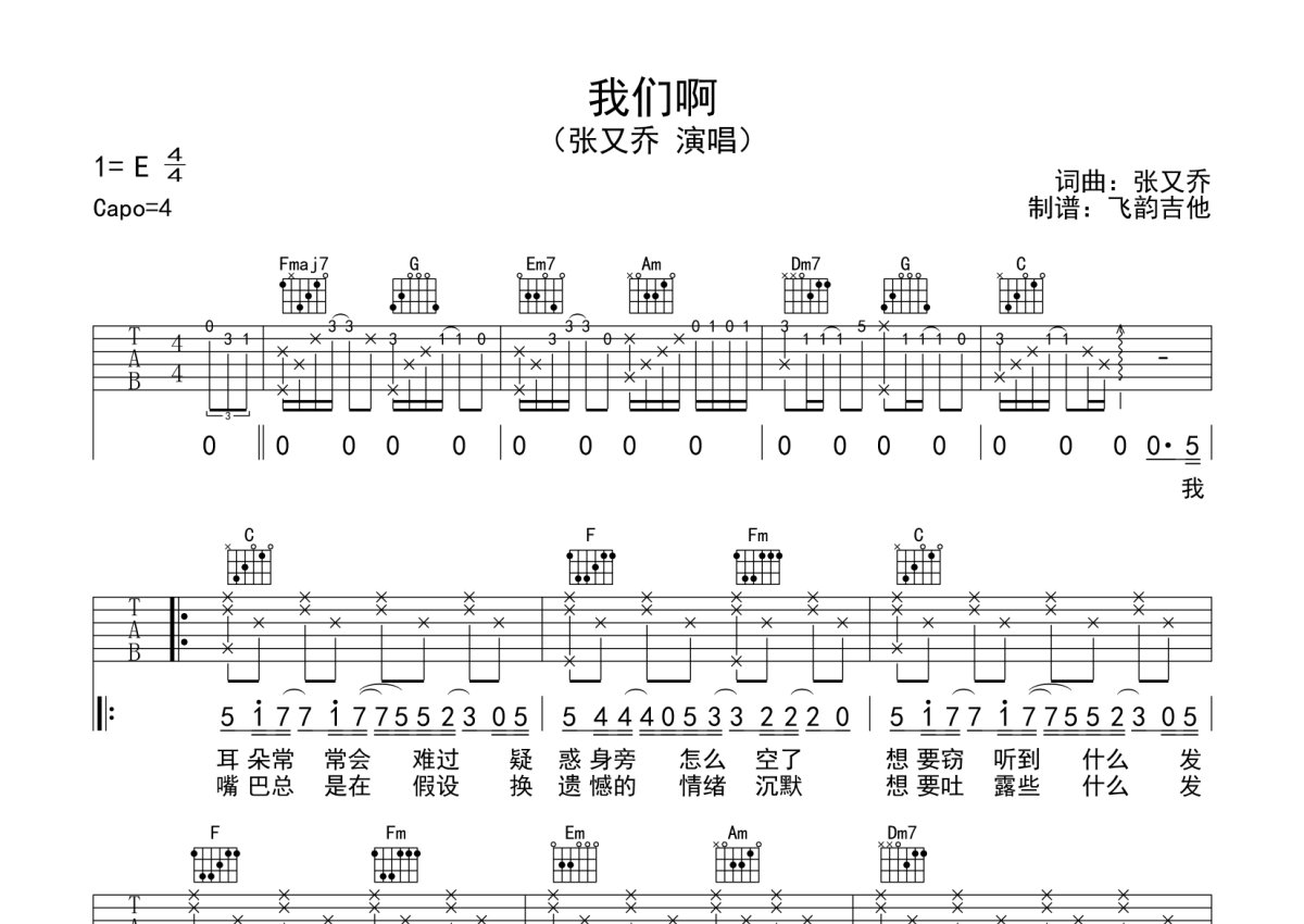 张又乔《我们啊》吉他谱 - C调弹唱六线谱