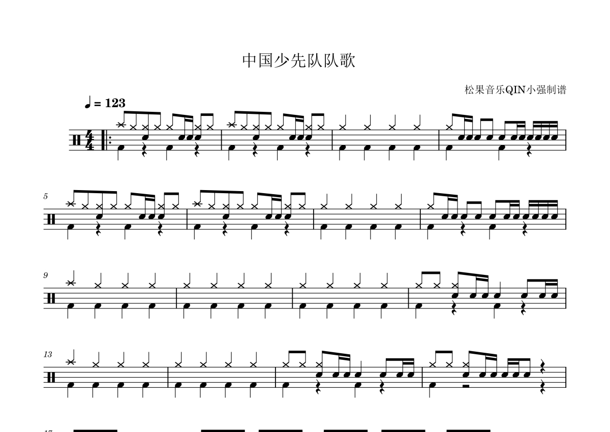 《中国少先队队歌》是中国少年先锋队队歌演唱的一首歌曲,拍号为4/4拍,这份架子鼓谱共有一张高清图谱,图谱由 @松果音乐QIN小强 编配上传,图谱使用五线谱编配,使用这份中国少先队队歌架子鼓谱,你将能够轻松地敲打出这首中国少年先锋队队歌的中国少先队队歌,快来尝试吧。《我们是共产主义接班人》是由周郁辉作词,寄明作曲的歌曲,原为1961年公映的电影《英雄小八路》主题曲,后被选为中国少年先锋队队歌。
