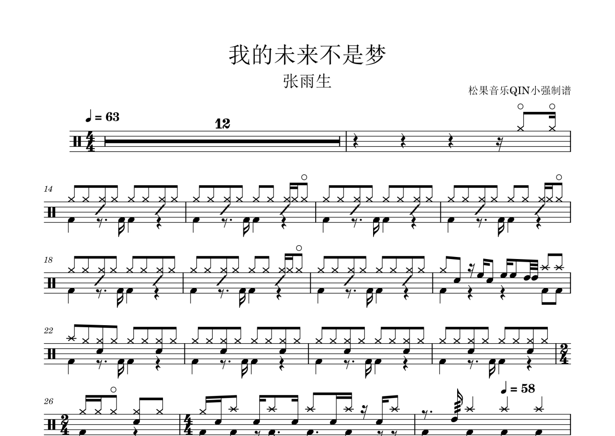 张雨生《我的未来不是梦》架子鼓谱