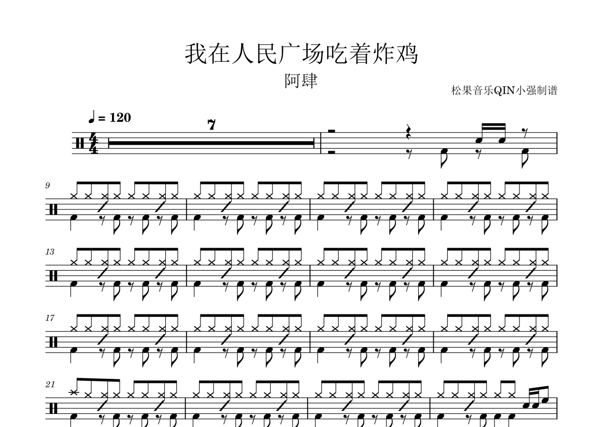 阿肆《我在人民广场吃着炸鸡》架子鼓谱