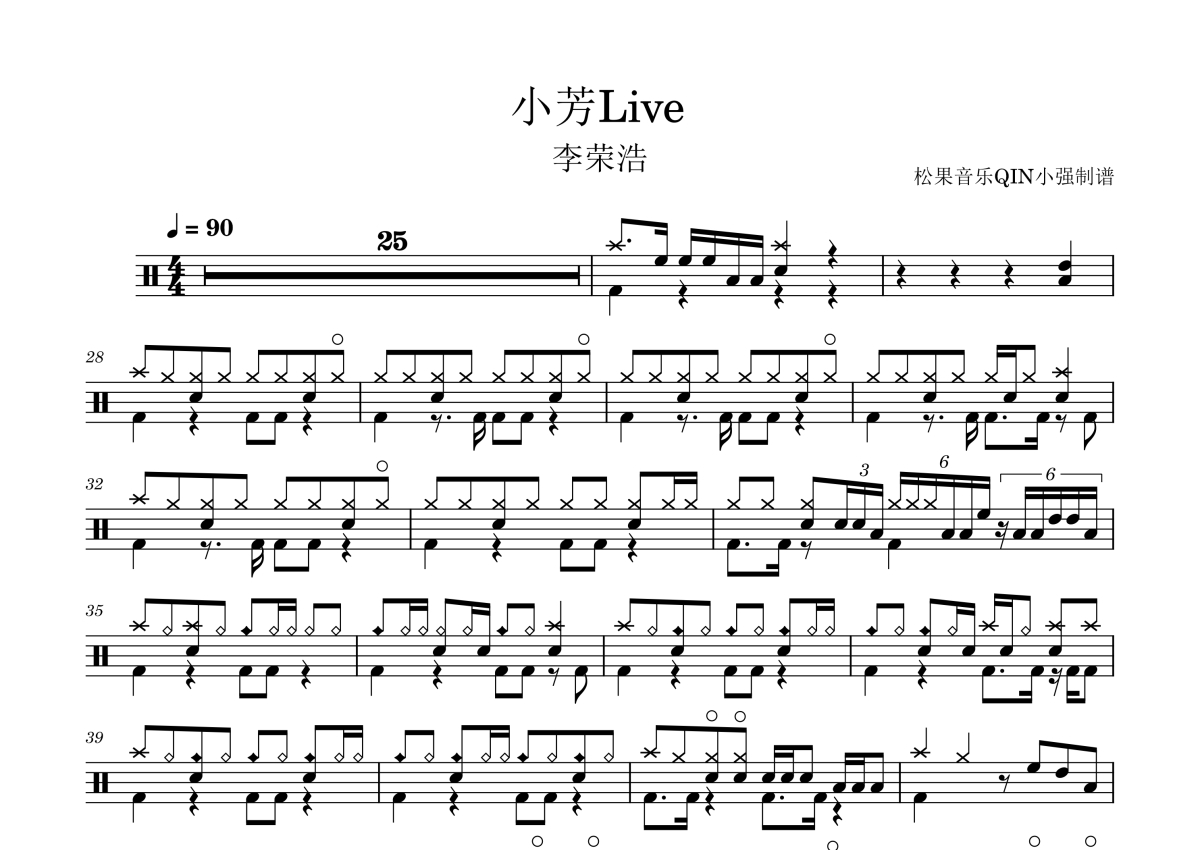 《小芳(live)》是live演唱的一首歌曲,拍号为4/4拍,这份架子鼓谱共有两张高清图谱,图谱由 @松果音乐QIN小强 编配上传,图谱使用五线谱编配,使用这份小芳(live)架子鼓谱,你将能够轻松地敲打出这首live的小芳(live),快来尝试吧。