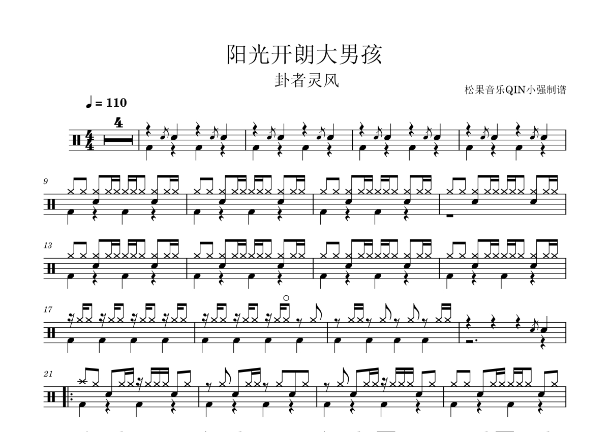 《阳光开朗大男孩》是卦者灵风演唱的一首歌曲,拍号为4/4拍,这份架子鼓谱共有两张高清图谱,图谱由 @松果音乐QIN小强 编配上传,图谱使用五线谱编配,使用这份阳光开朗大男孩架子鼓谱,你将能够轻松地敲打出这首卦者灵风的阳光开朗大男孩,快来尝试吧。《阳光开朗大男孩》最早发布于哔哩哔哩,由卦者灵风(b站名字:卦者那啥子靈風)于2021年11月15日上传。